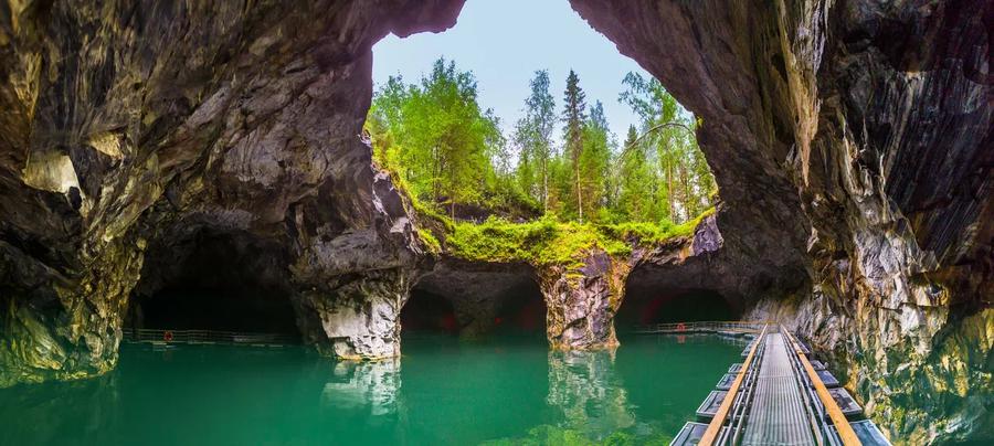 Сегодня Рускеальский парк – это поражающие каньоны и хрустальные озера, лабиринты подземных штолен и живописные отвесные мраморные скалы.